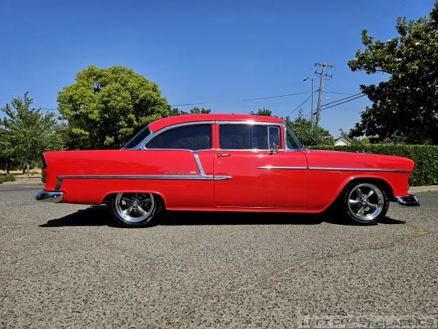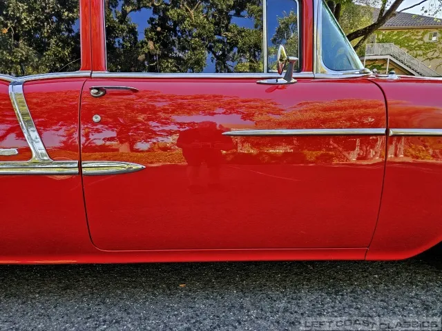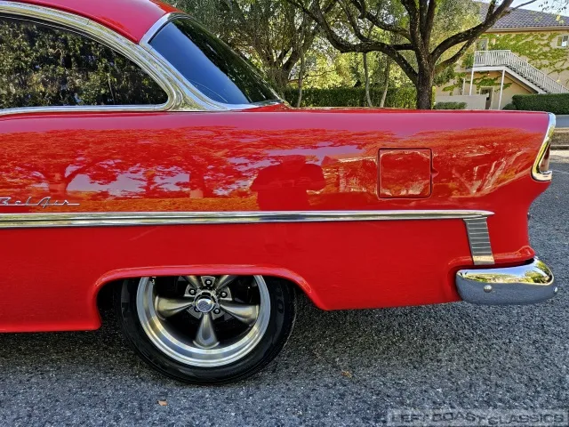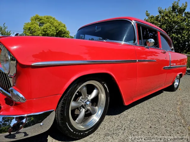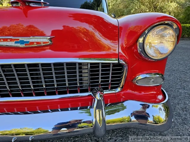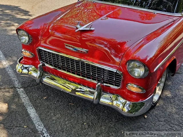This 1955 Chevrolet Bel Air 2-Door Sedan, assembled in Oakland, CA (VIN VC550072830), was originally finished in India Ivory over Skyline Blue with a Light Blue and Dark Blue cloth/vinyl interior (Trim #513). Purchased in Los Angeles around 2010 after over 20 years of storage by its previous owner, it underwent a frame-on restoration.