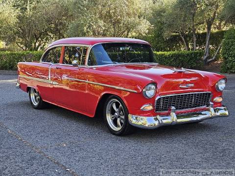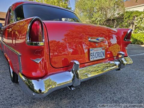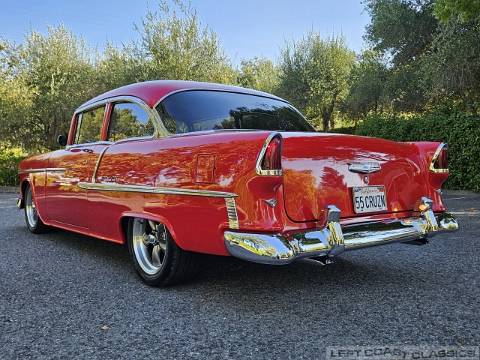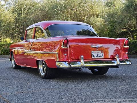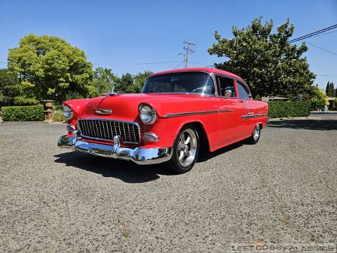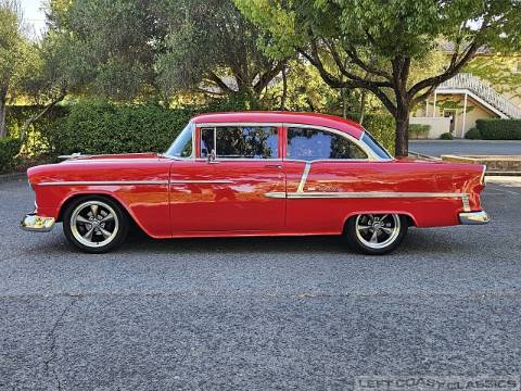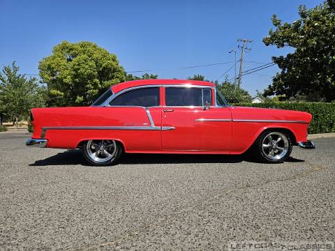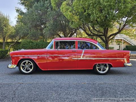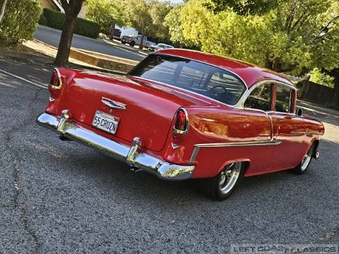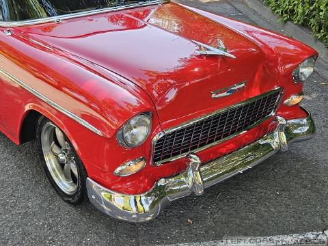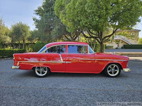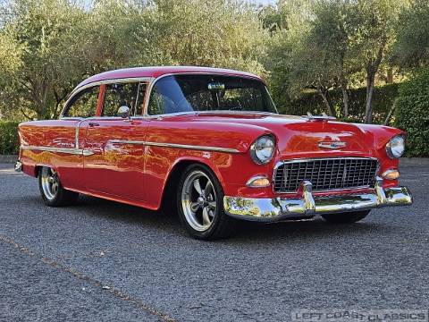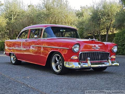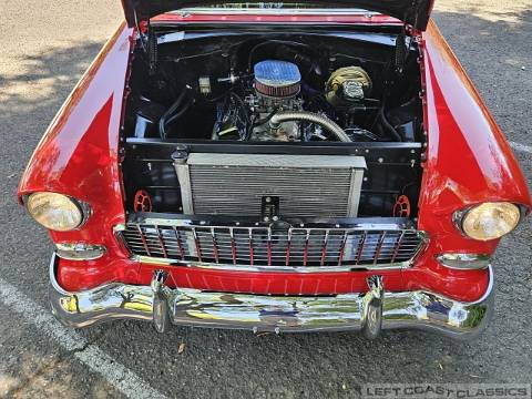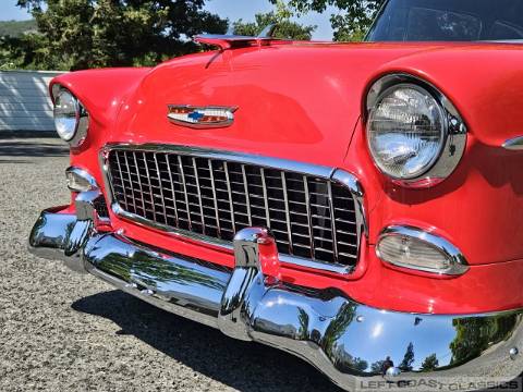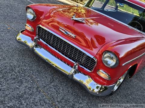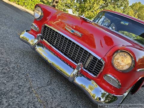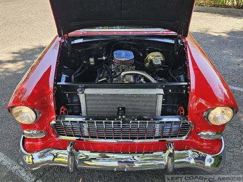 View close-up detailed photos of this 1955 Chevrolet Bel Air's interior, engine, undercarriage and body. This cool custom Bel Air is for sale from Left Coast Classics in Sonoma California
