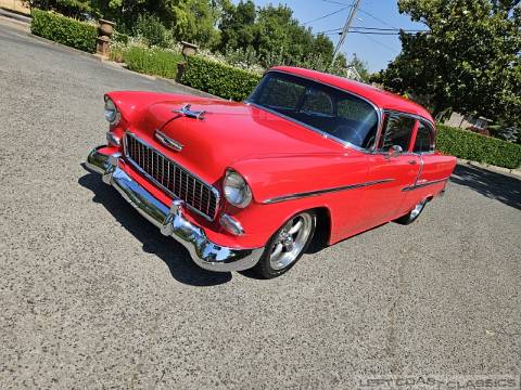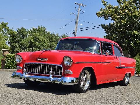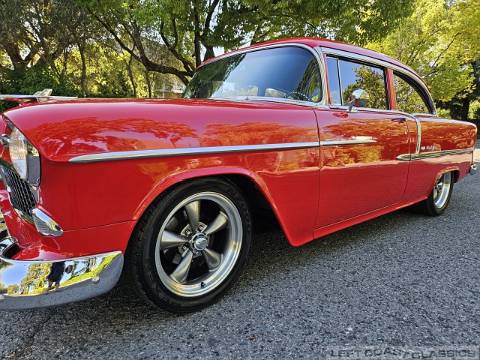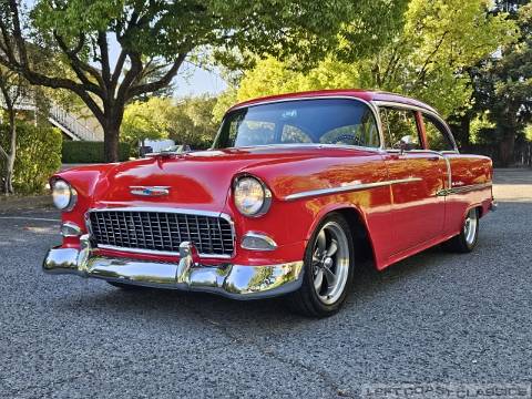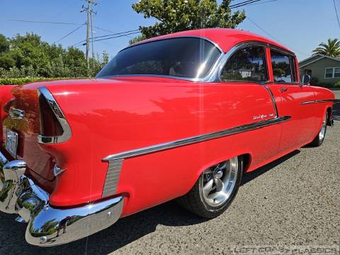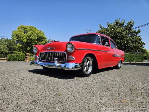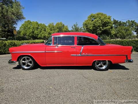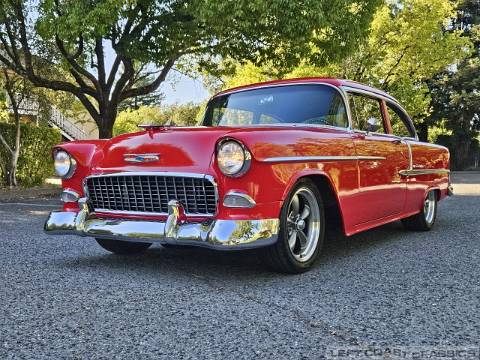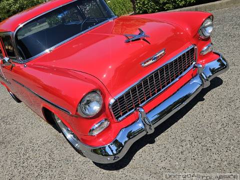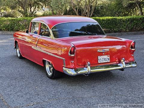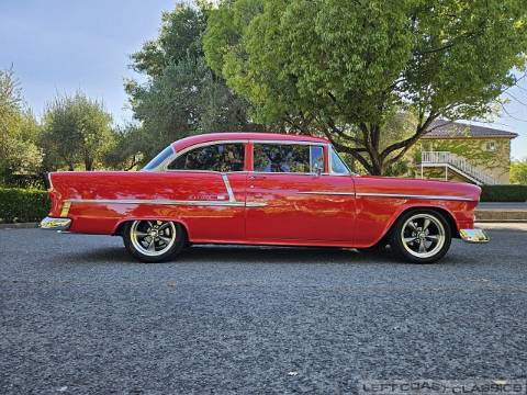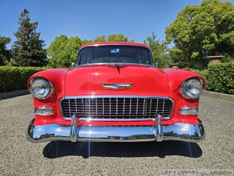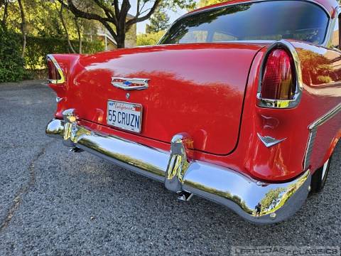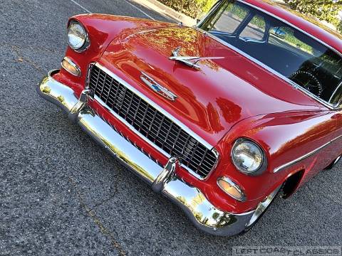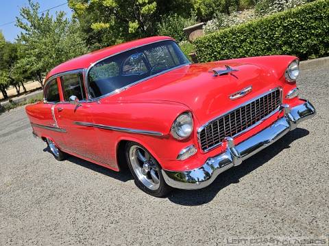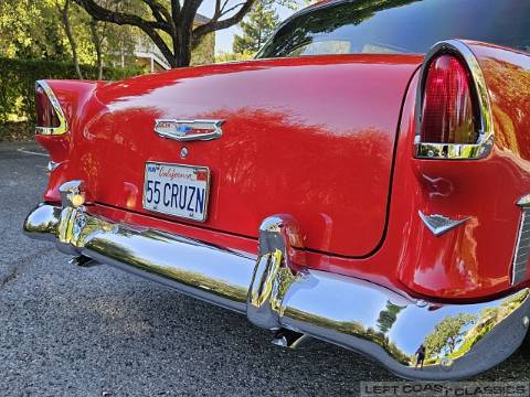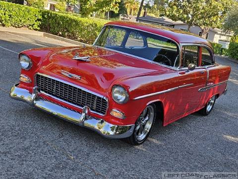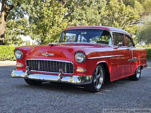 View close-up detailed photos of this 1955 Chevrolet Bel Air's interior, engine, undercarriage and body. This cool custom Bel Air is for sale from Left Coast Classics in Sonoma California