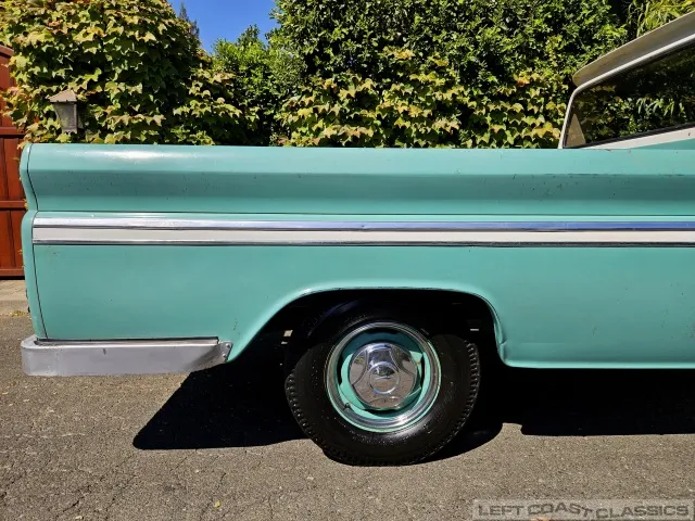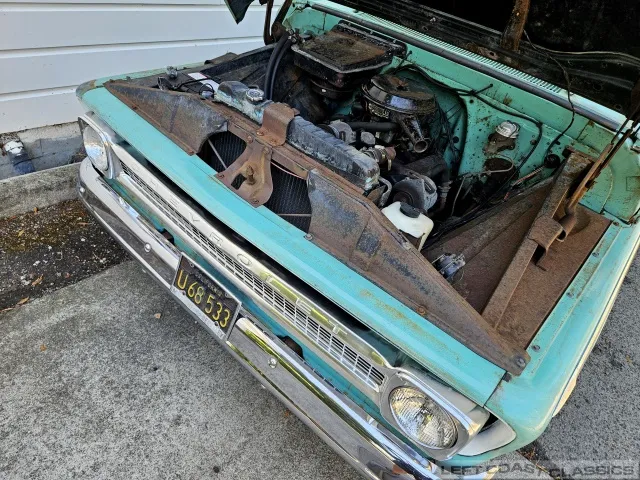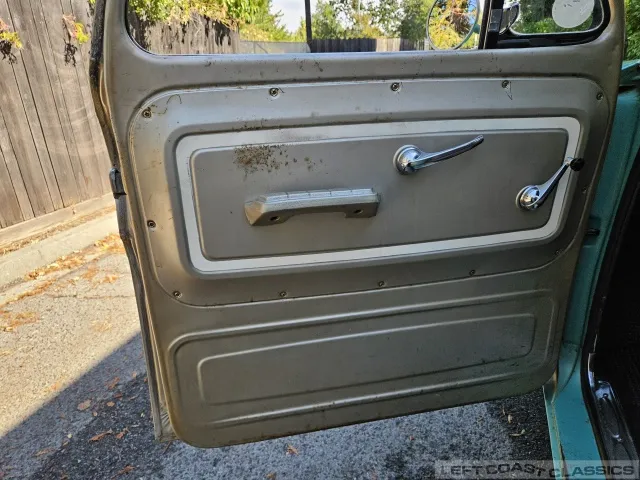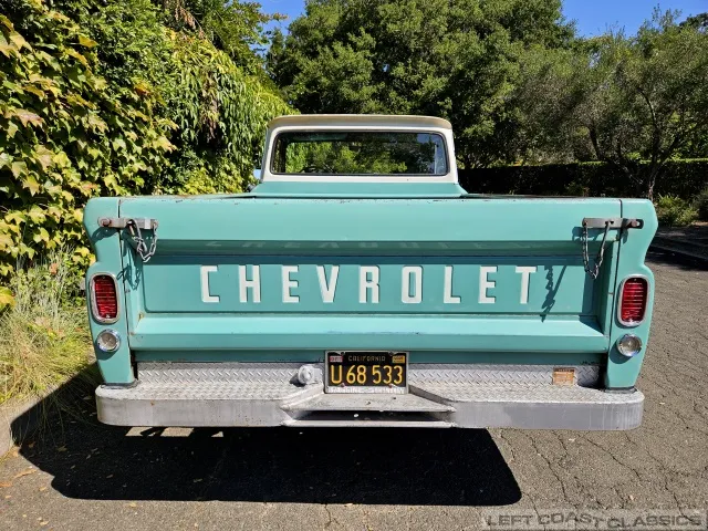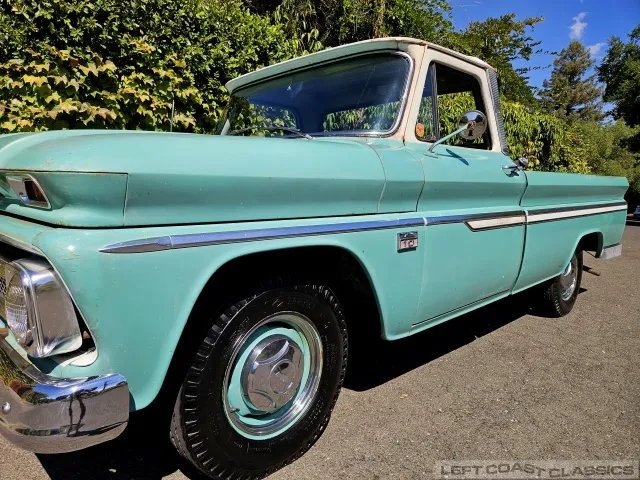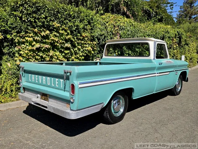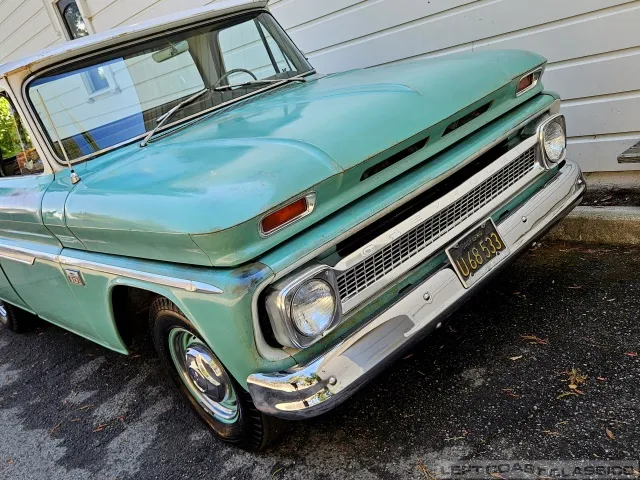 Super original 1966 Chevrolet C10 for sale. This amazing California truck was purchased new on April 30, 1966, at Maggini Chevrolet, Berkeley, California. It remains finished in its original Fathom Turquoise and White, with a well-preserved, all-original Fawn Metallic interior and mostly intact Fawn vinyl upholstery. It includes its original owner’s guide, Protection Plan booklet, data sheet, and Protect-O-Plate.