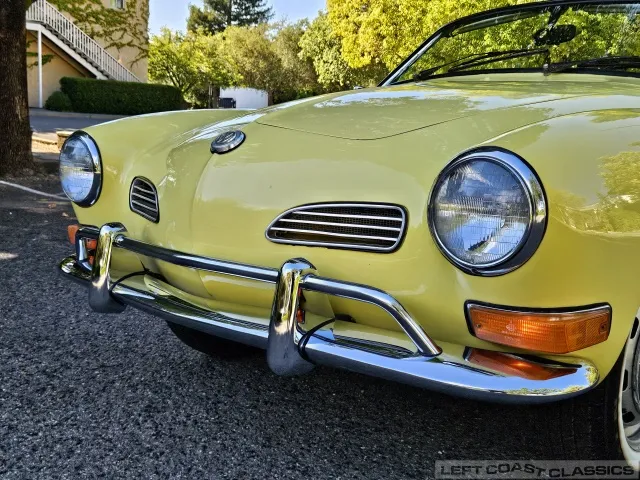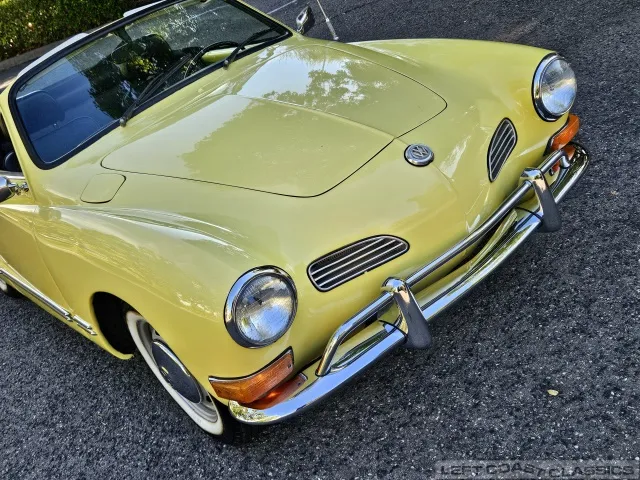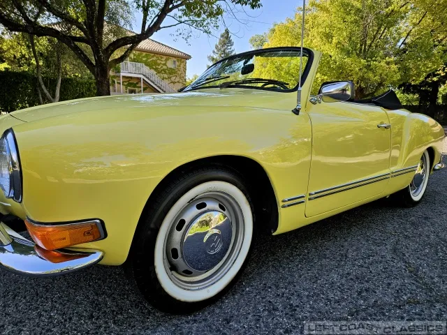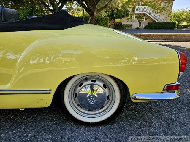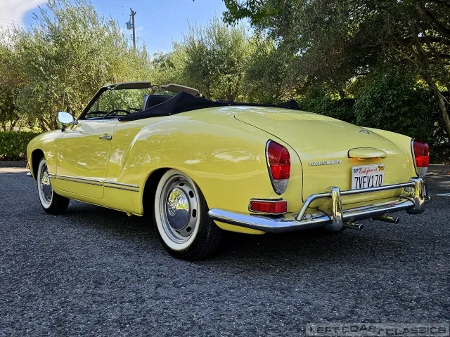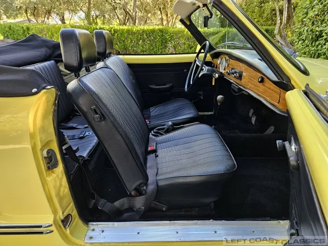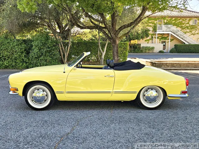 This 1970 Volkswagen Karmann Ghia Convertible, a Type 14 built in August 1969, is finished in Shantung Yellow with a black vinyl interior and a newer canvas top. Acquired by its current owner in 2016, it has been driven sparingly, under 2,000 miles in nine years, and received several mechanical improvements to ensure reliable performance. Showing 97,859 miles (actual mileage unknown), this driver-quality example is ready for weekend cruises.