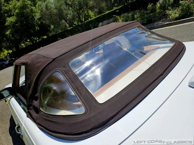 The trim and glass are in good condition, and the original dark brown convertible top operates smoothly, complementing the car’s classic look. The included factory hardtop makes this 560SL versatile for year-round enjoyment.
