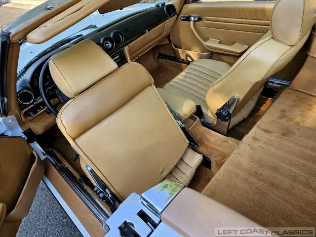 All gauges and lights are in good working order, though the power door lock system is currently inoperative. Overall, the cockpit is a lovely place to spend time, offering the luxurious feel that defines the 560SL experience.