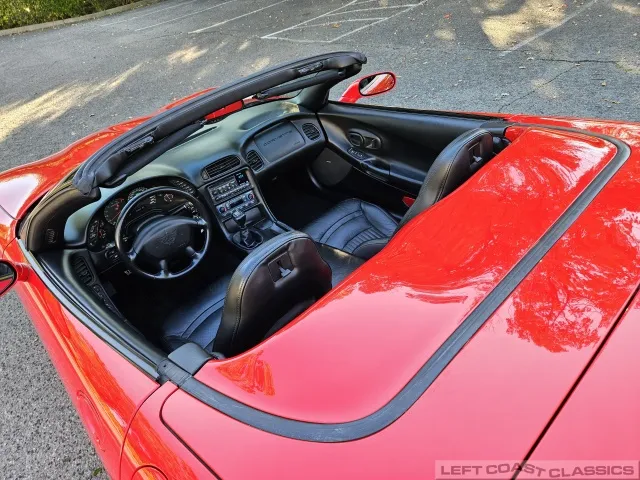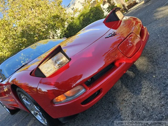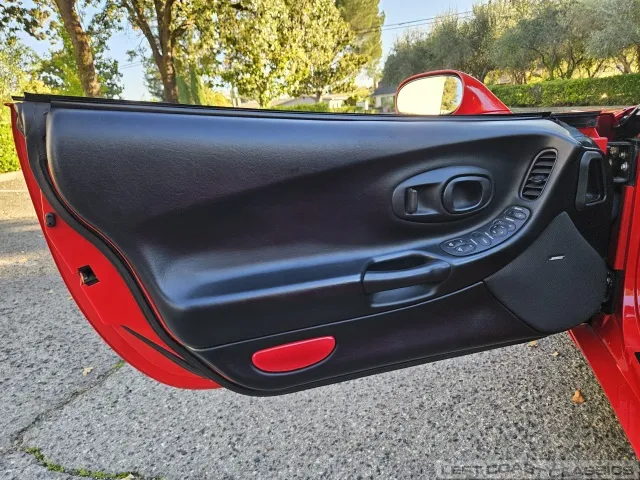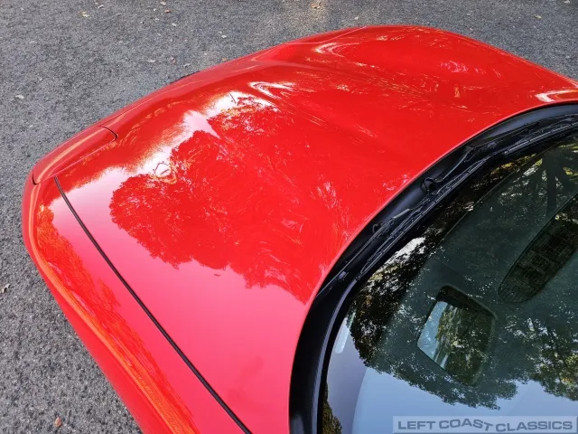 Finished in brilliant Torch Red, the paint remains glossy and well-preserved, showing straight body panels, precise gaps, and clean trim throughout. The car received a professional cosmetic repair in early 2024 after a minor scrape on the driver’s side, now virtually undetectable and finished to a very high standard. The glass is clear, the weatherstripping supple, and the lenses bright. It sits on polished 5-spoke aluminum wheels wrapped in Goodyear Eagle F1 tires, underscoring its purposeful yet elegant stance.