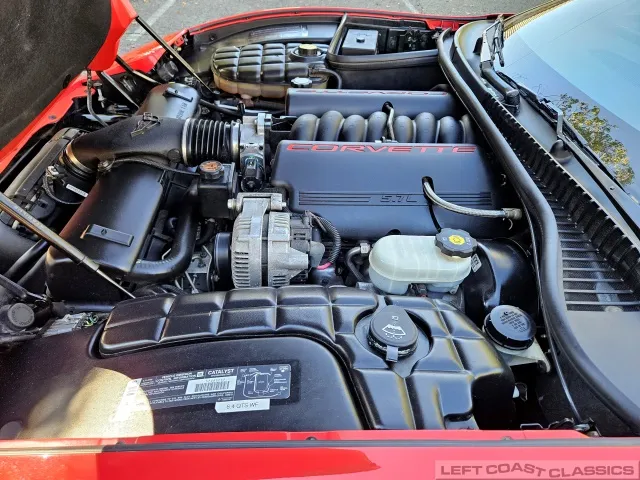 Power comes from the legendary 5.7-liter LS1 small-block V8 paired with the 6-speed manual gearbox, delivering 350 horsepower with that unmistakable Corvette growl. The car feels tight and responsive, with smooth clutch take-up and crisp, effortless shifting. The drivetrain operates exactly as it should—strong power delivery, no hesitation, and excellent oil pressure. Its four-wheel independent suspension, power rack-and-pinion steering, and four-wheel disc brakes with ABS provide confident handling, while traction control and stability assist keep it composed when pushed. A stainless steel exhaust with polished tips completes the car’s performance character, blending everyday drivability with classic Corvette spirit.