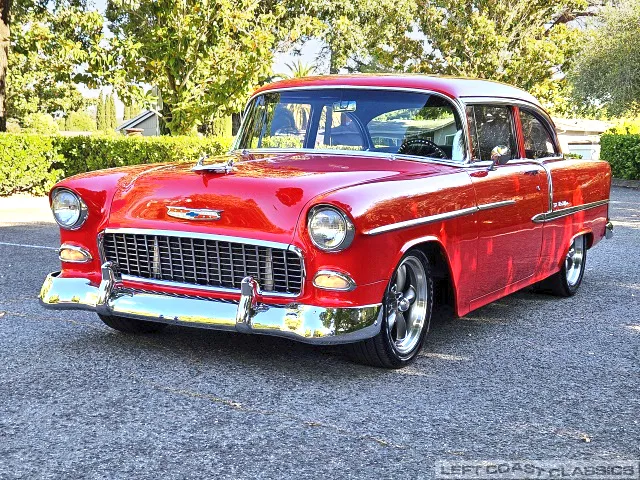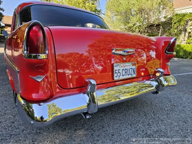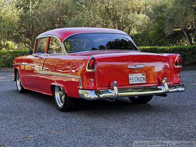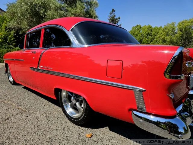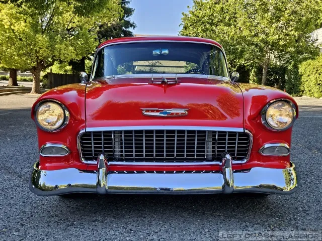 This 1955 Chevrolet Bel Air 2-Door Sedan, assembled in Oakland, CA (VIN VC550072830), was originally finished in India Ivory over Skyline Blue with a Light Blue and Dark Blue cloth/vinyl interior (Trim #513). Purchased in Los Angeles around 2010 after over 20 years of storage by its previous owner, it underwent a frame-on restoration.
