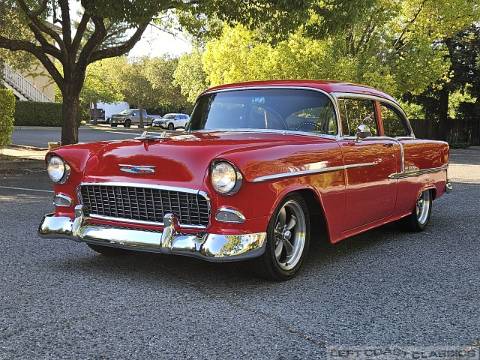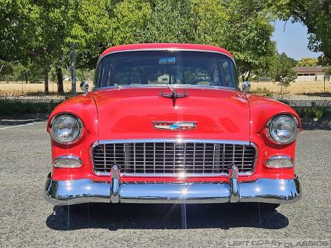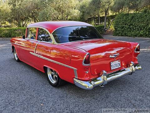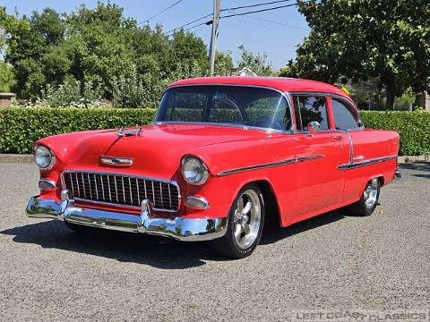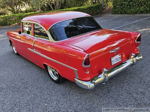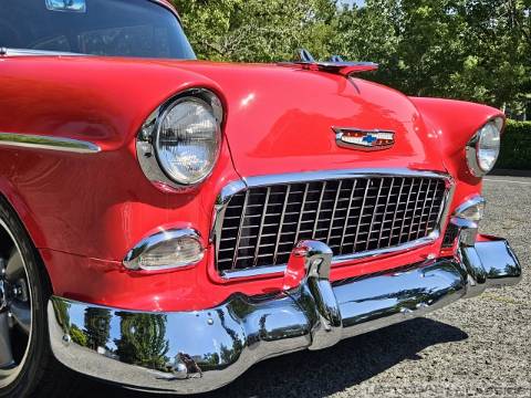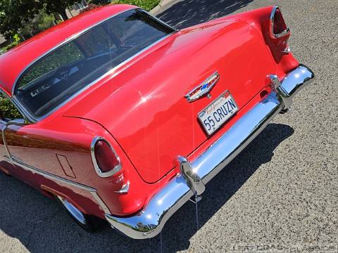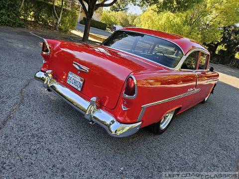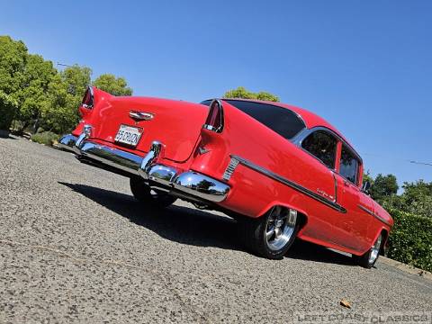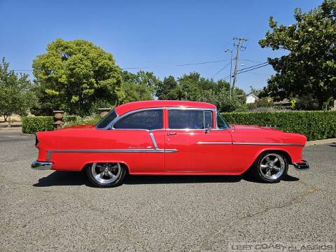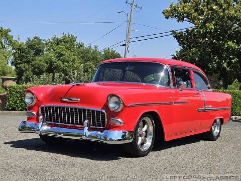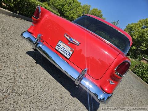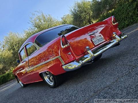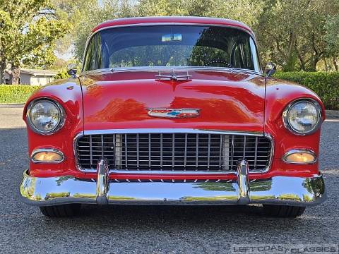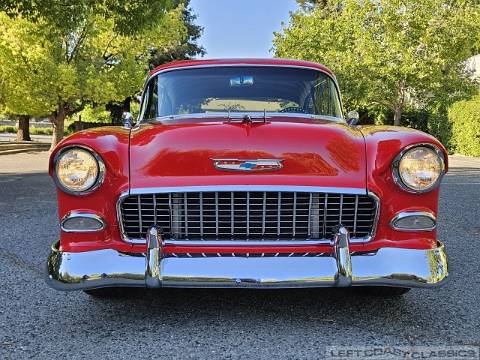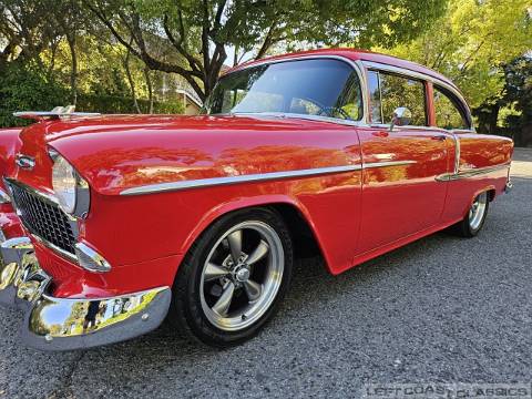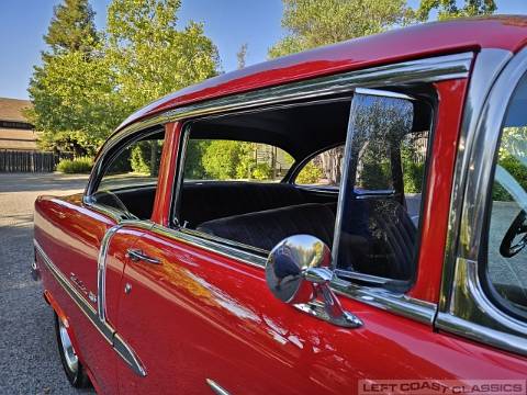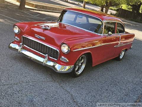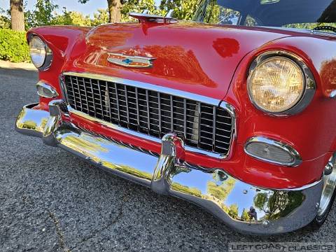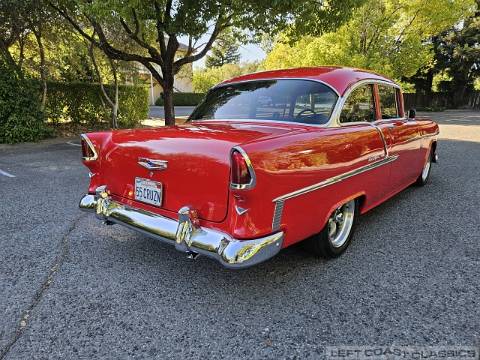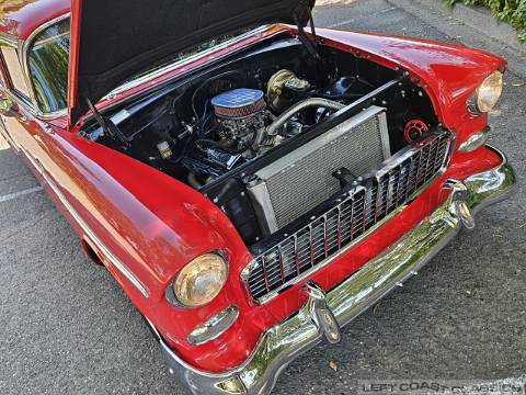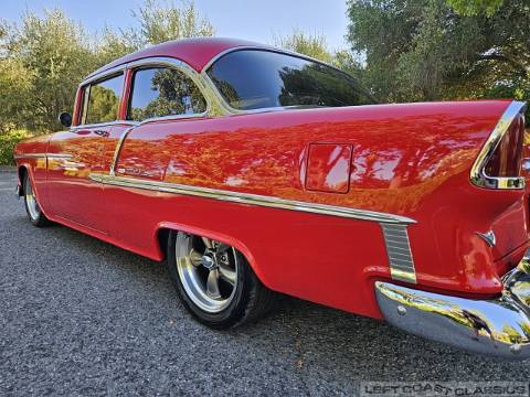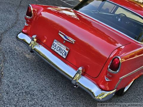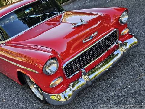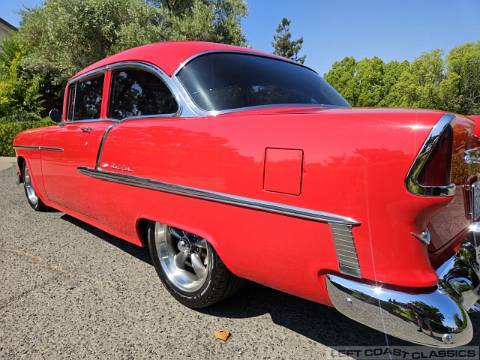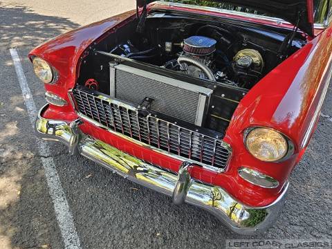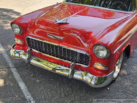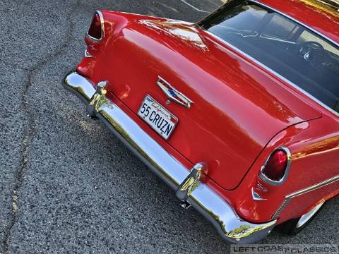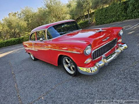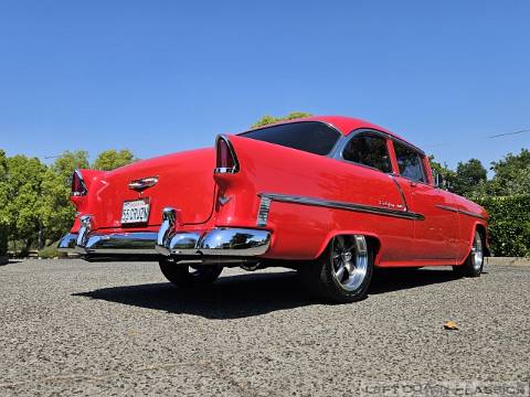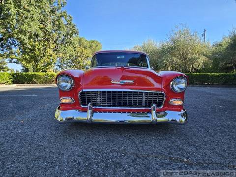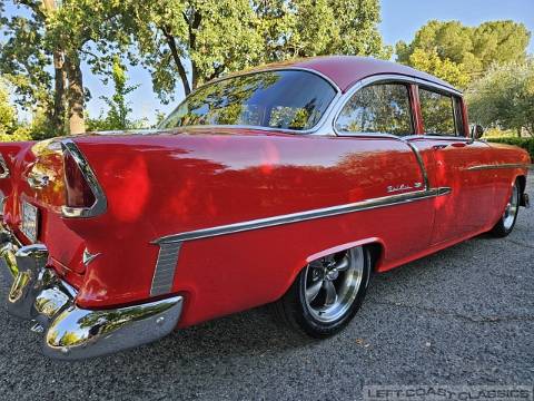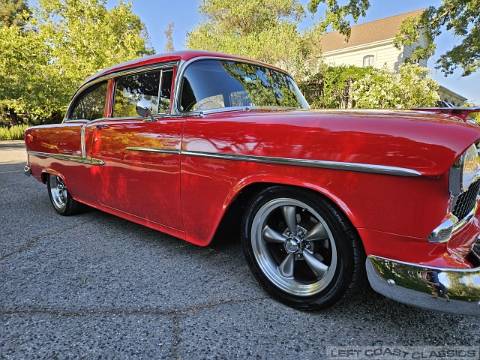 View close-up detailed photos of this 1955 Chevrolet Bel Air's interior, engine, undercarriage and body. This cool custom Bel Air is for sale from Left Coast Classics in Sonoma California