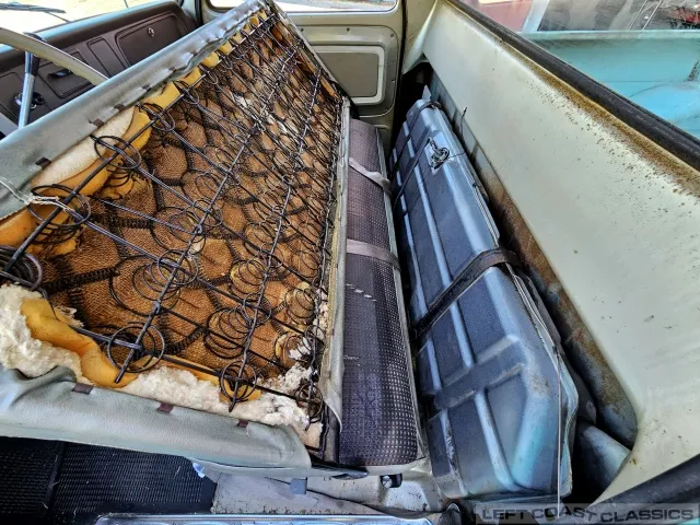 Inside, it’s equally impressive. It still wears its original Fawn vinyl seat cover, with the build sheet still tucked behind the seatback (albeit tattered). A new reproduction seat cover would be a smart idea, though we’ve placed a simple cover over it for preservation. Otherwise, the interior is a true time capsule and a treat to cruise around in.