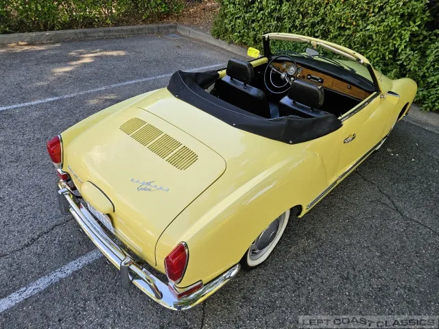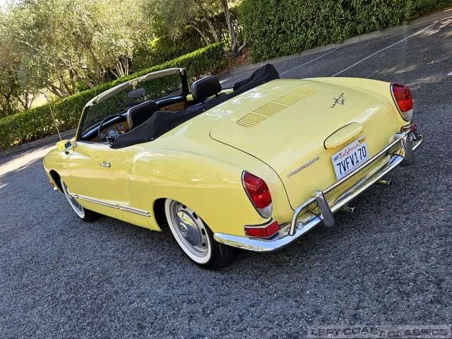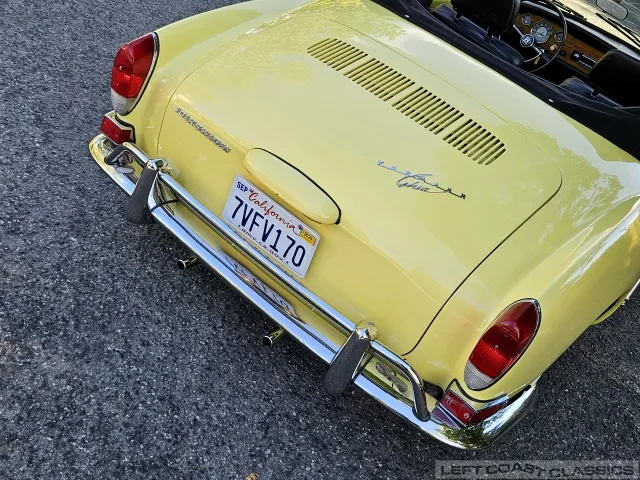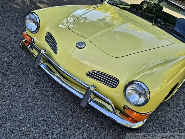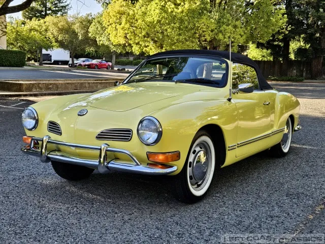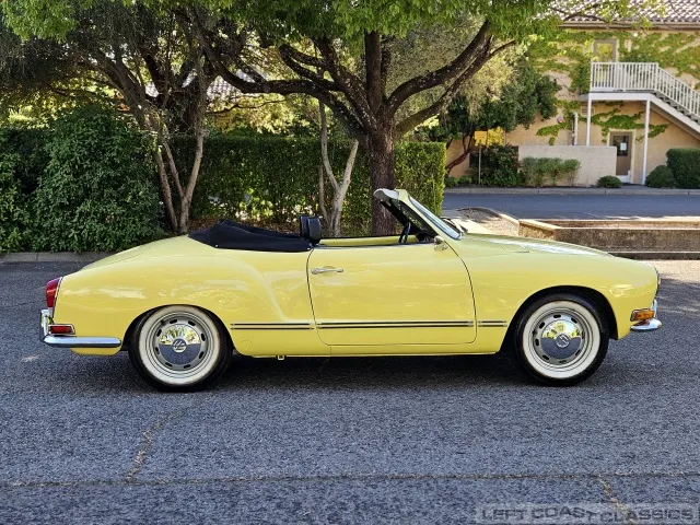 This 1970 Volkswagen Karmann Ghia Convertible, a Type 14 built in August 1969, is finished in Shantung Yellow with a black vinyl interior and a newer canvas top. Acquired by its current owner in 2016, it has been driven sparingly, under 2,000 miles in nine years, and received several mechanical improvements to ensure reliable performance. Showing 97,859 miles (actual mileage unknown), this driver-quality example is ready for weekend cruises.