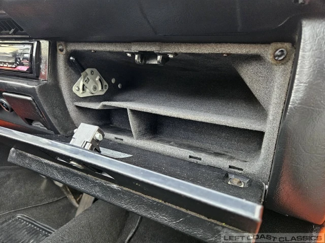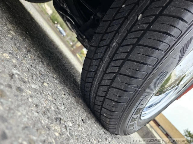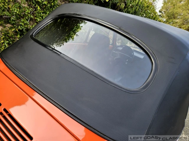 The exterior presents nicely with typical age and light patina consistent with a well-preserved classic. The convertible top still retains the glass rear window, appears to have been replaced at some point, looks excellent, operates smoothly, and seals up nicely. The car was repainted in its original Phoenix Red (L32K) by a previous owner and retains a deep shine today. The finish shows a few minor flaws here and there as expected with an older repaint, but overall it presents very well.