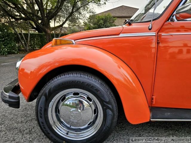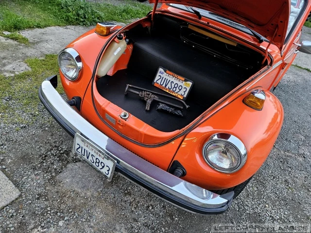The car sits on a new set of 165/80 R15s tires mounted on attractive upgraded chrome-finished Volkswagen wheels fitted with traditional VW hubcaps. All systems and lighting are in good working order. Underneath, the car presents well with nice floors, solid dog legs, and good structural integrity throughout. The underside reflects a solid Northern California car with clean infrastructure all around. Overall, it’s a very appealing Beetle that gets smiles and positive attention everywhere I take it.