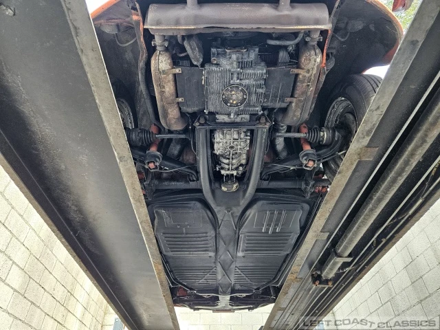 Power comes from what appears to be the car’s original low-mileage 1600cc dual-port air-cooled flat-four engine, which starts easily, idles smoothly, and runs with plenty of power and pull. The 4-speed manual transmission shifts easily through all the gears, while the braking, suspension, and steering feel tight and responsive, making the car fun and easy to drive. After bringing the car out of a roughly 10-year hiatus in storage, we performed a recommissioning to ensure reliable road use.