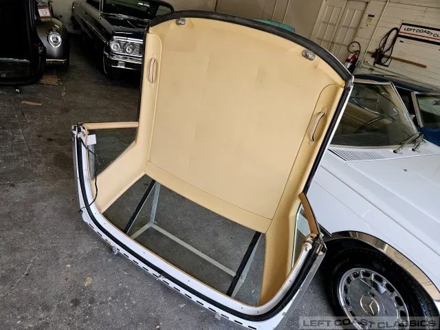 The trim and glass are in good condition, and the original dark brown convertible top operates smoothly, complementing the car’s classic look. The included factory hardtop makes this 560SL versatile for year-round enjoyment.