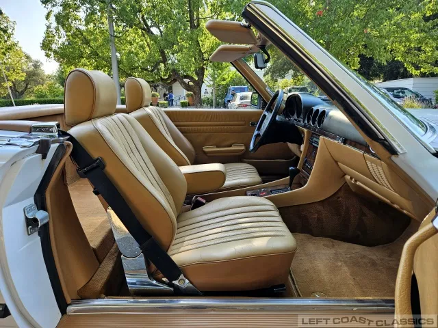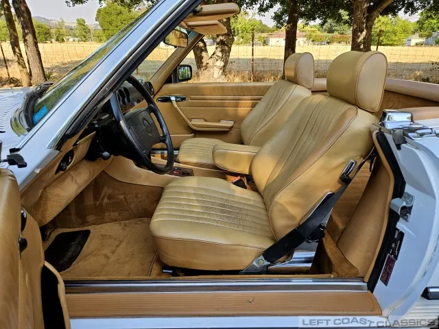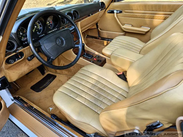 All gauges and lights are in good working order, though the power door lock system is currently inoperative. Overall, the cockpit is a lovely place to spend time, offering the luxurious feel that defines the 560SL experience.