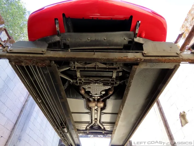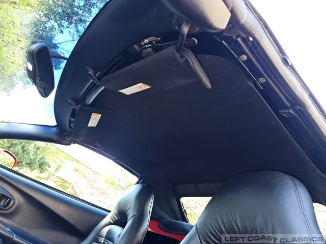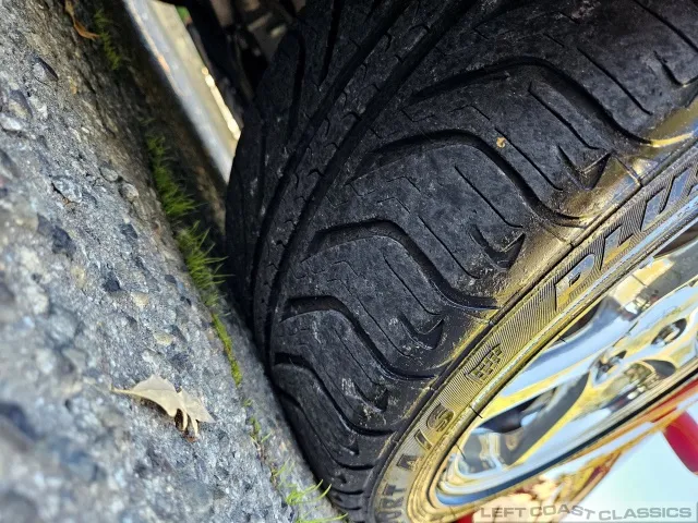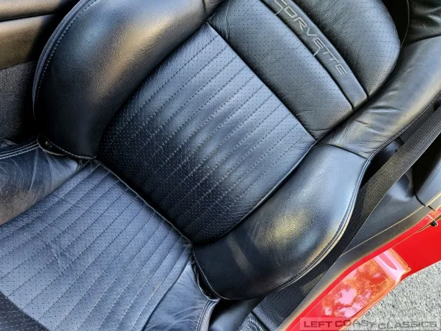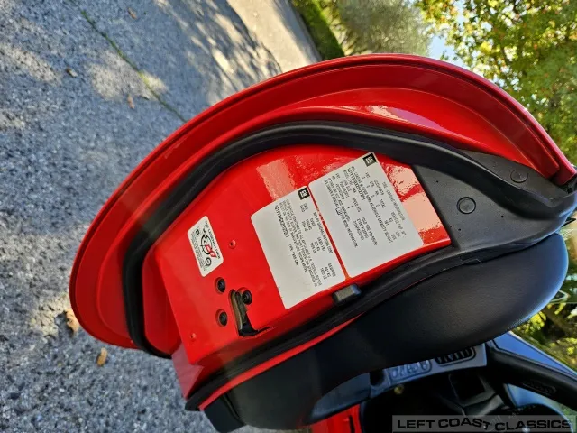Finished in brilliant Torch Red, the paint remains glossy and well-preserved, showing straight body panels, precise gaps, and clean trim throughout. The car received a professional cosmetic repair in early 2024 after a minor scrape on the driver’s side, now virtually undetectable and finished to a very high standard. The glass is clear, the weatherstripping supple, and the lenses bright. It sits on polished 5-spoke aluminum wheels wrapped in Goodyear Eagle F1 tires, underscoring its purposeful yet elegant stance.