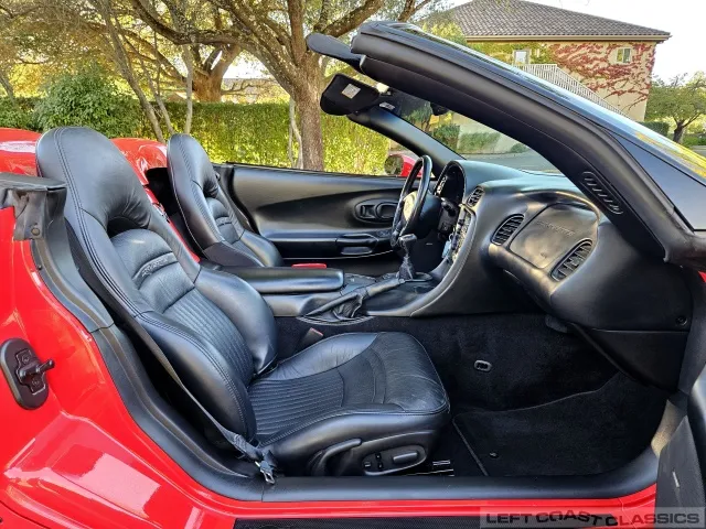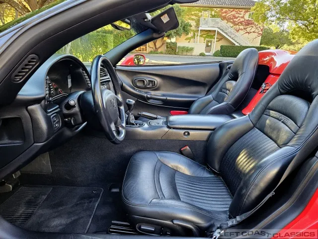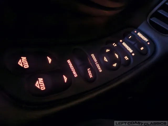 Inside, the black leather cockpit presents in excellent condition—no odors, minimal wear, and a clear indication of careful ownership. The power sport seats retain firm bolsters, the leather remains soft, and all switchgear works properly. Equipment includes dual-zone automatic climate control, memory settings for the driver’s seat and mirrors, keyless entry with alarm, power windows and locks, illuminated storage, and a premium Bose sound system with a remote 12-disc CD changer. It’s a non-smoker car that feels and smells as clean as it looks—one of the finer C5 interiors you’ll find.