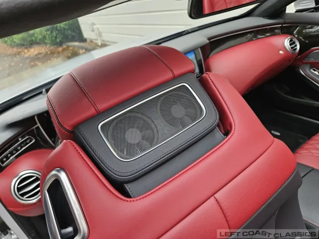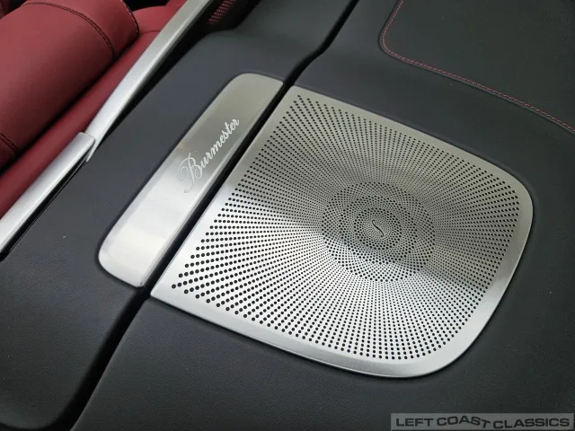 The experience is further elevated by the Burmester High-End 3D Surround Sound System, a 24-speaker, 1,500-watt audiophile setup delivering exceptional clarity and balance. Even with the top down, sound remains rich and immersive thanks to the system’s adaptive compensation for open-air acoustics. Combined with the deep red leather and meticulous craftsmanship, it creates an enveloping, multisensory environment of elegance and precision.